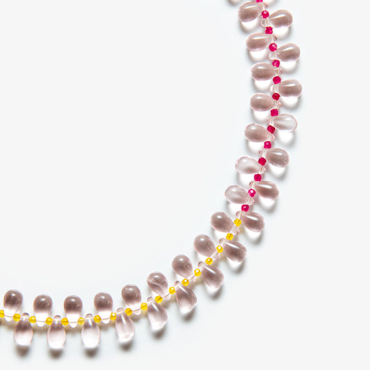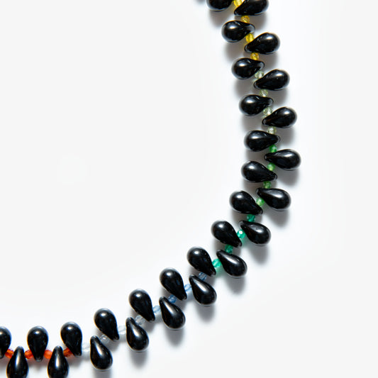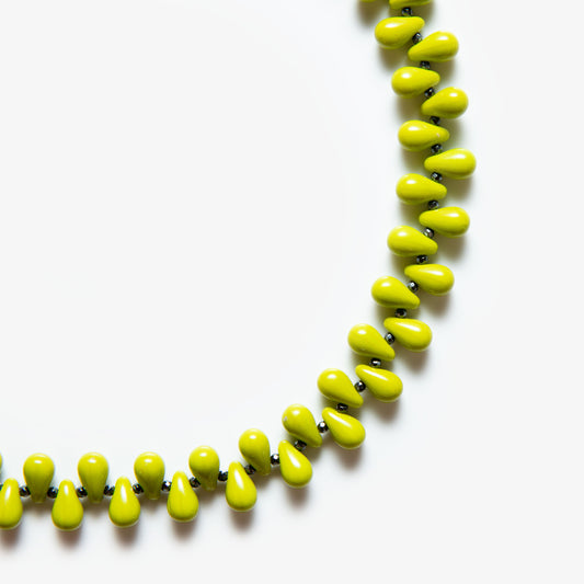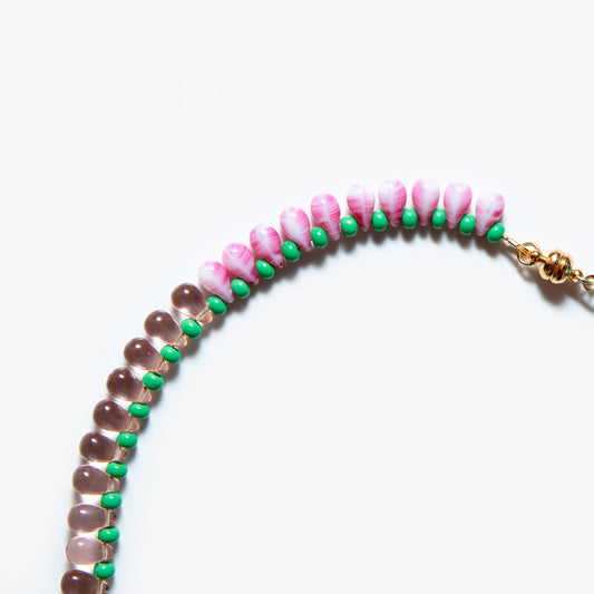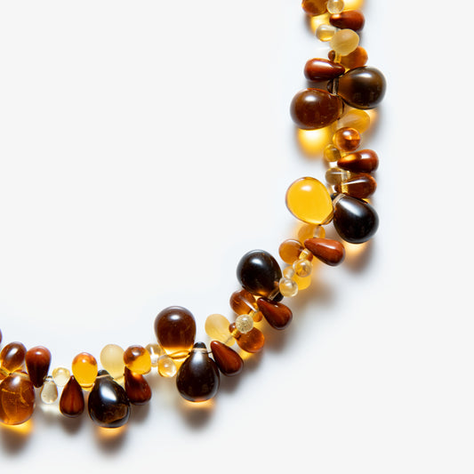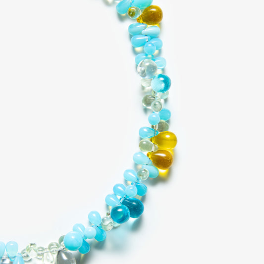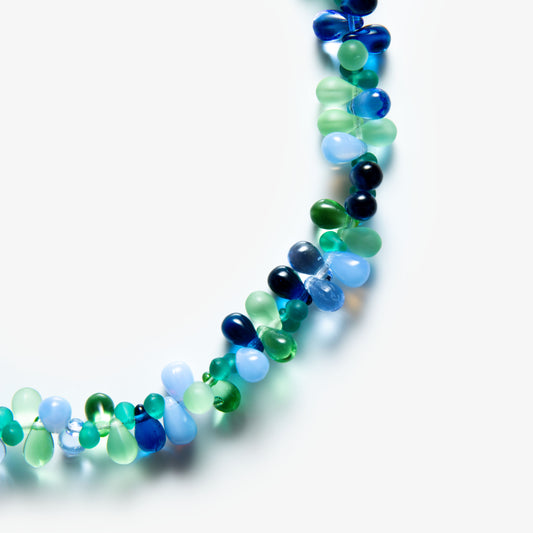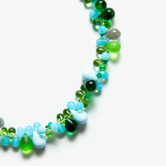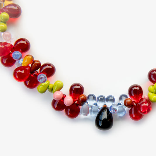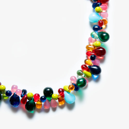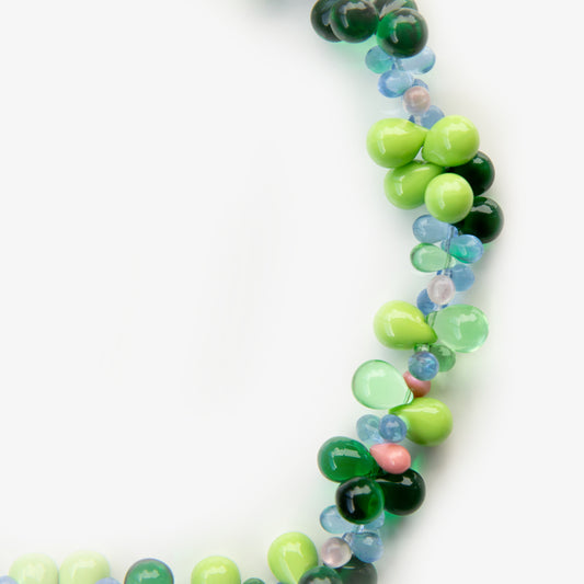 Grape Necklace showcases a cluster of vibrant glass beads, carefully arranged to evoke the rich, textured form of a grapevine. Its playful design and delicate structure create a unique balance of elegance and charm.