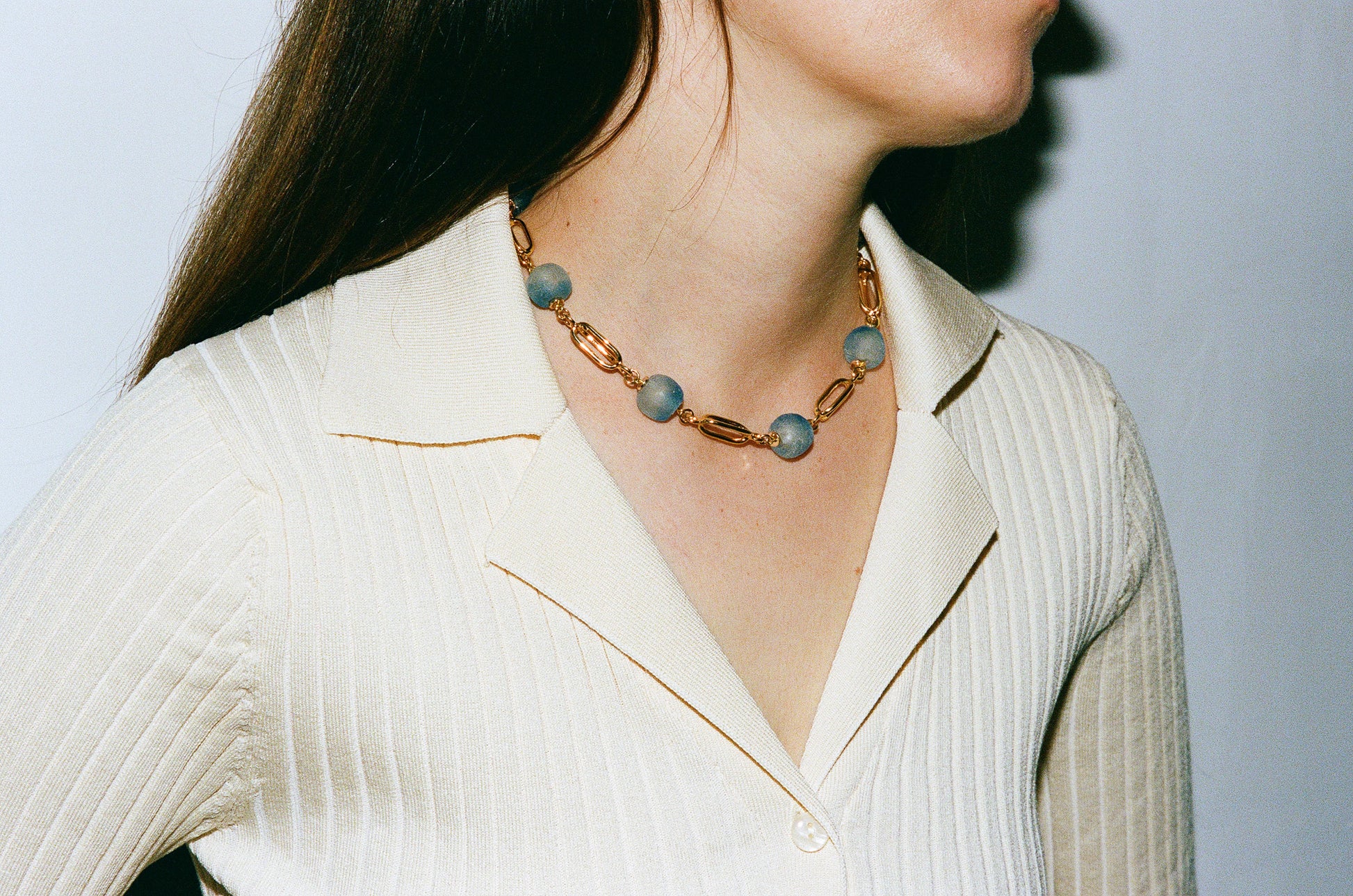 All of our jewelry is handmade in our atelier. Glass beads may have natural imperfections and are not perfectly identical, adding to the unique character of each piece.