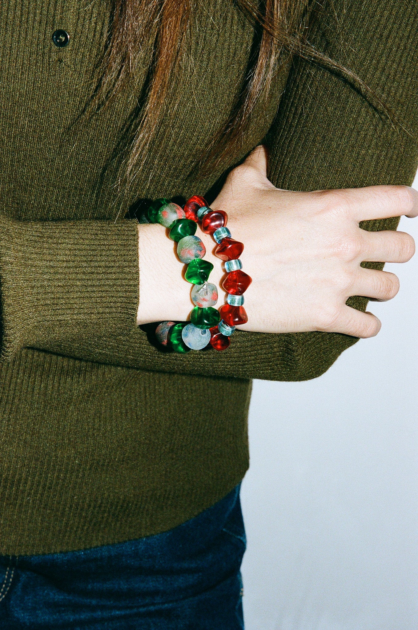 All of our jewelry is handmade in our atelier. Glass beads may have natural imperfections and are not perfectly identical, adding to the unique character of each piece.