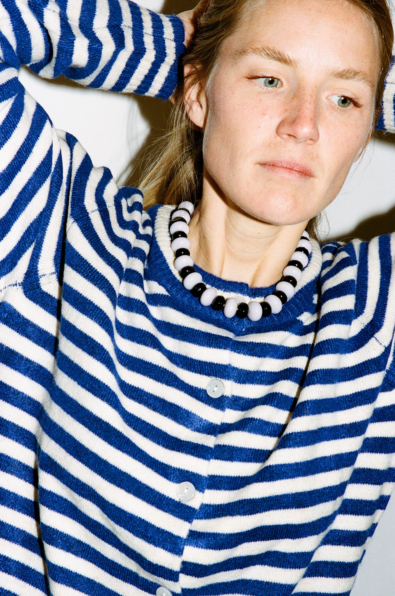 All of our jewelry is handmade in our atelier. Glass beads may have natural imperfections and are not perfectly identical, adding to the unique character of each piece.
