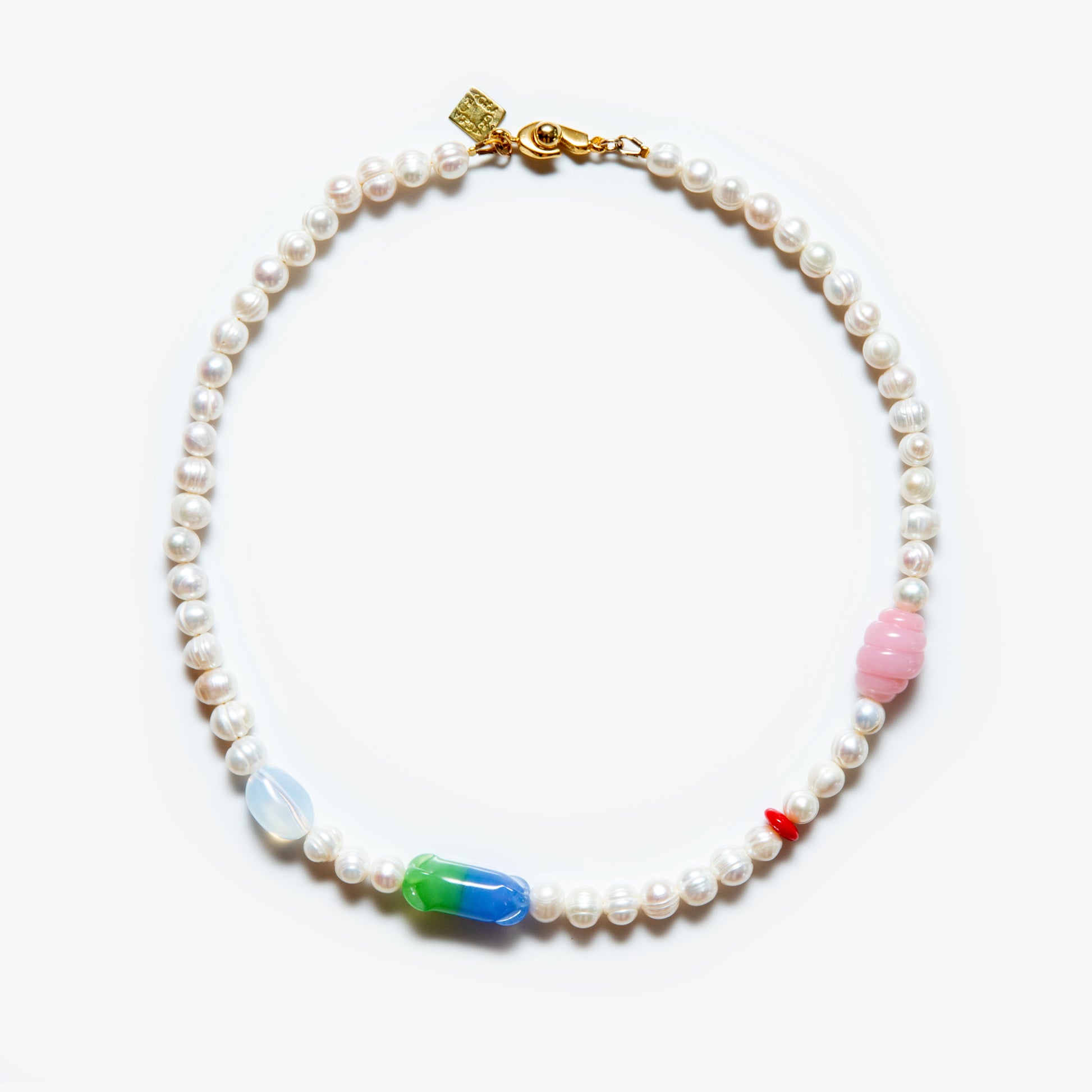Necklace with Freshwater Pearls and Vintage Glass Beads.