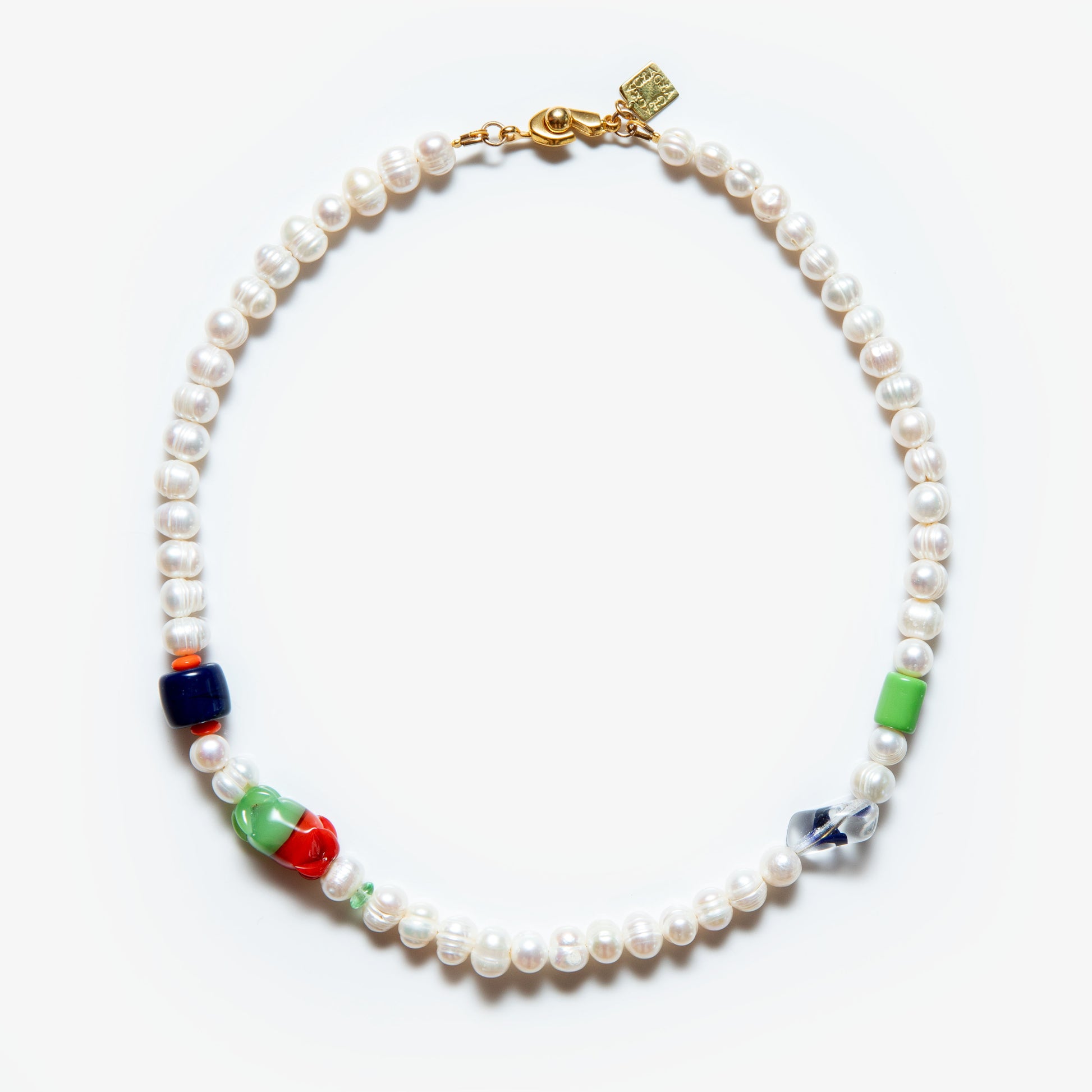 Necklace with Freshwater Pearls and Vintage Glass Beads.