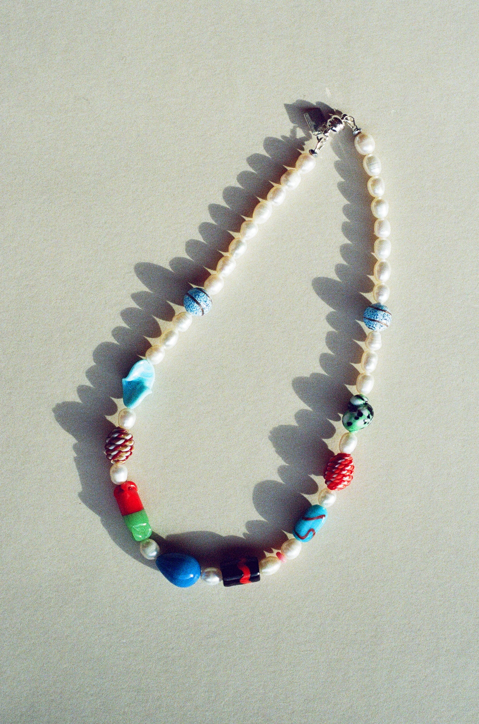 Necklace with Freshwater Pearls & Vintage Glass Beads.