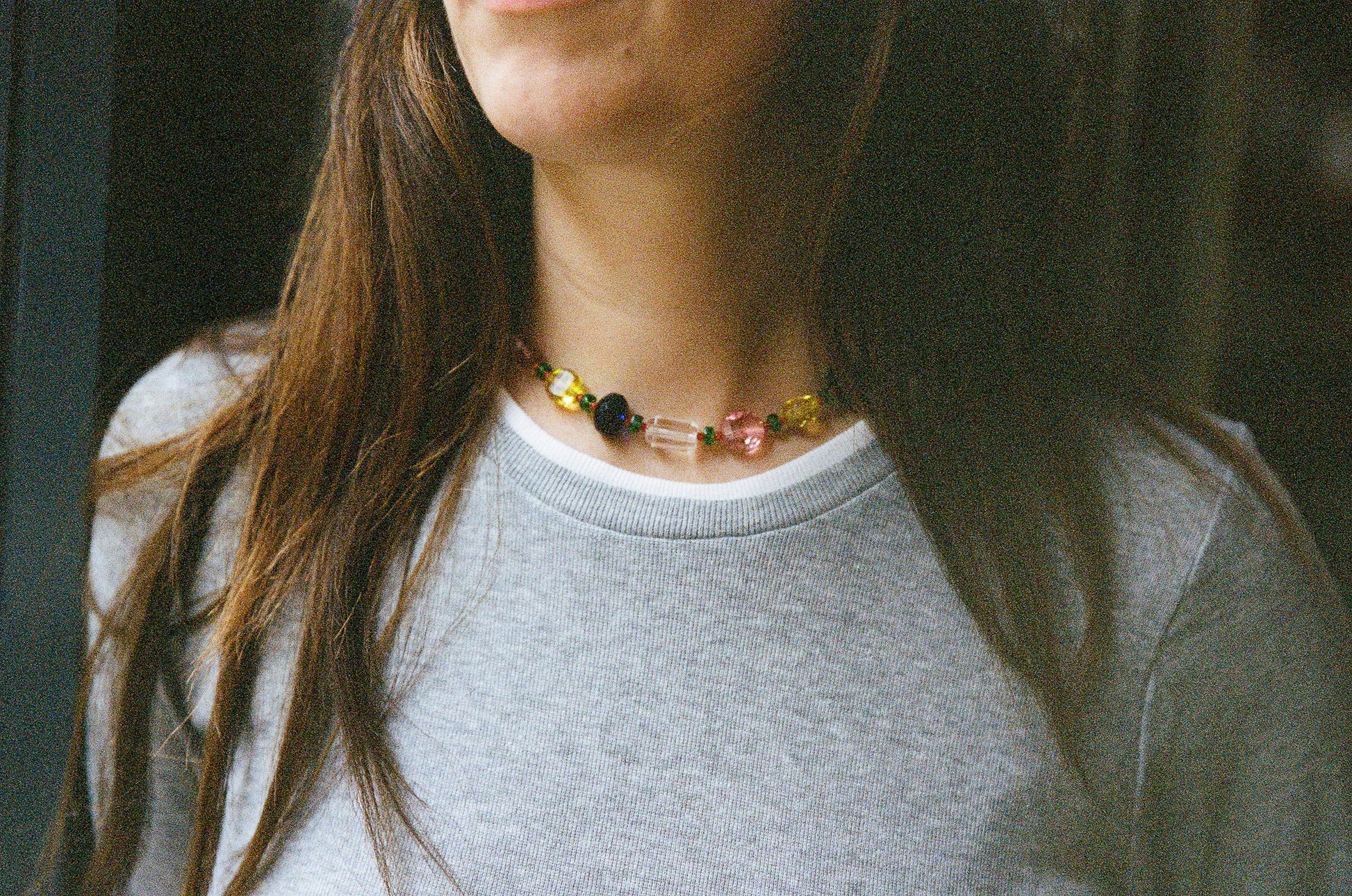 All of our jewelry is handmade in our atelier. Glass beads may have natural imperfections and are not perfectly identical, adding to the unique character of each piece.