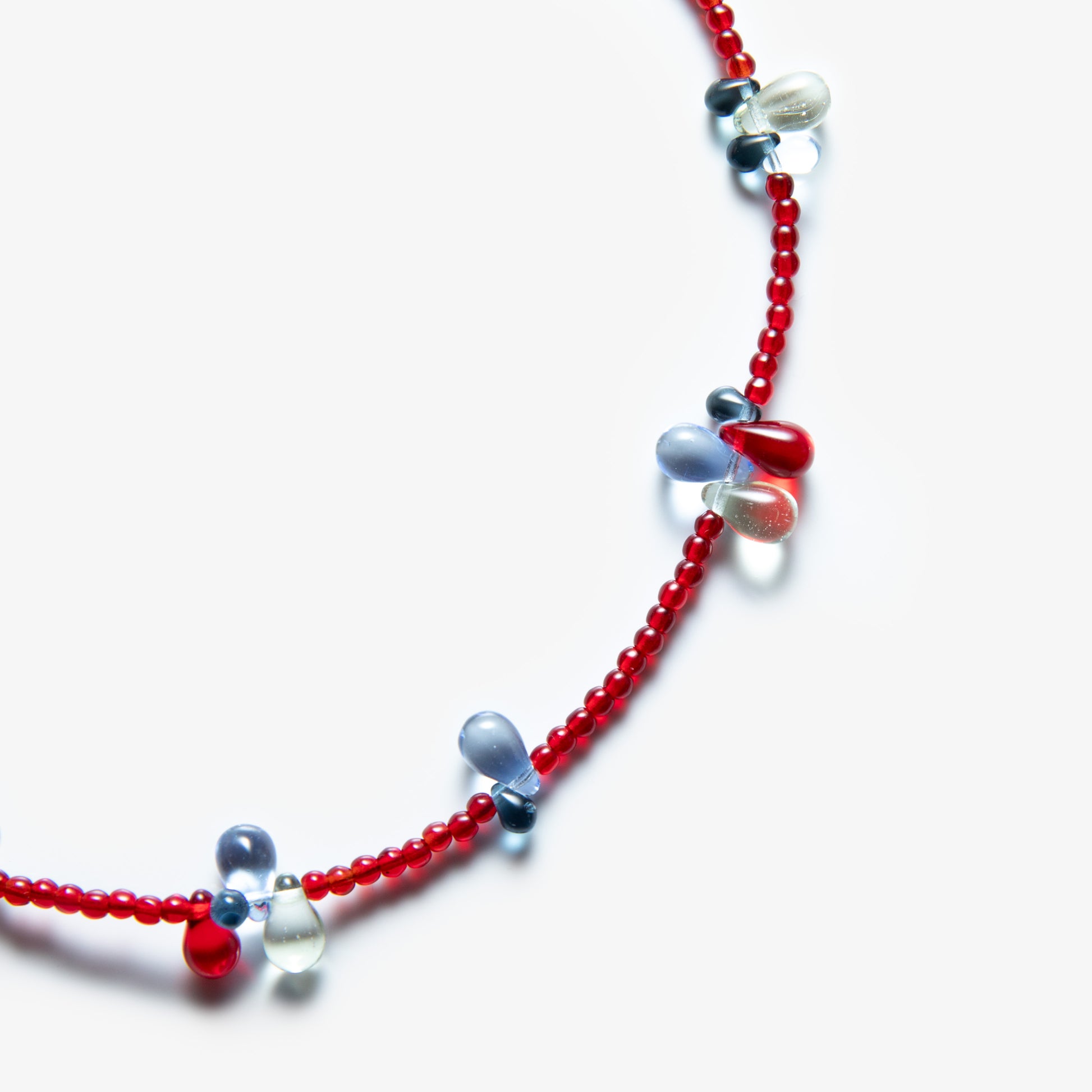 Mini Multi Drop Necklace in Ruby Red with Glass Beads.